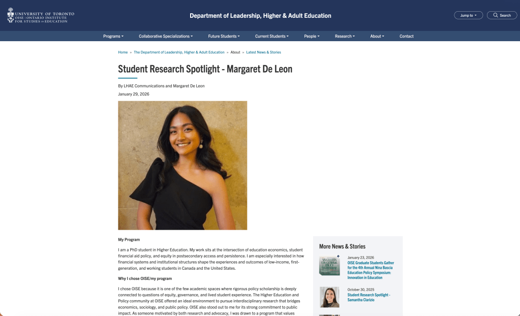OISE Doctoral Research Fellowship, Ontario Institute for Studies in Education, University of Toronto, 2023-2027