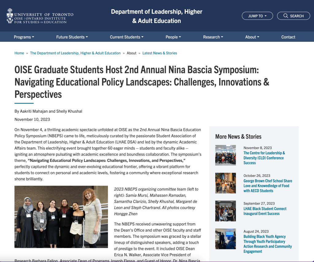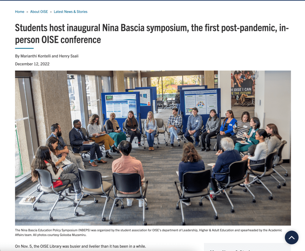 Symposium Organizer (December 2023 to March 2024) (Livestream)Nina Bascia Educational Policy Symposium