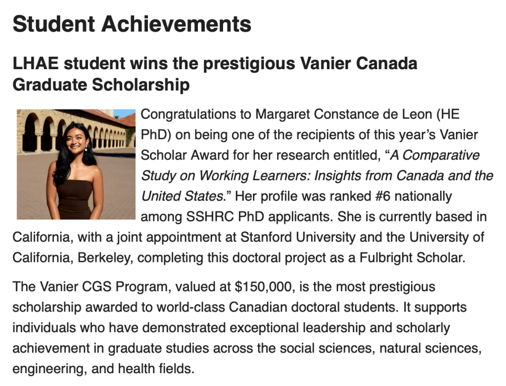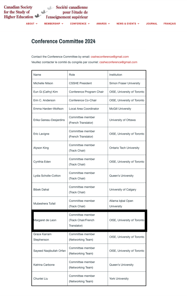 Graduate Student Representative, Awards Committee (2024)Canadian Society for the Study of Higher Education 2024 Conference (November 2023 to June 2024)