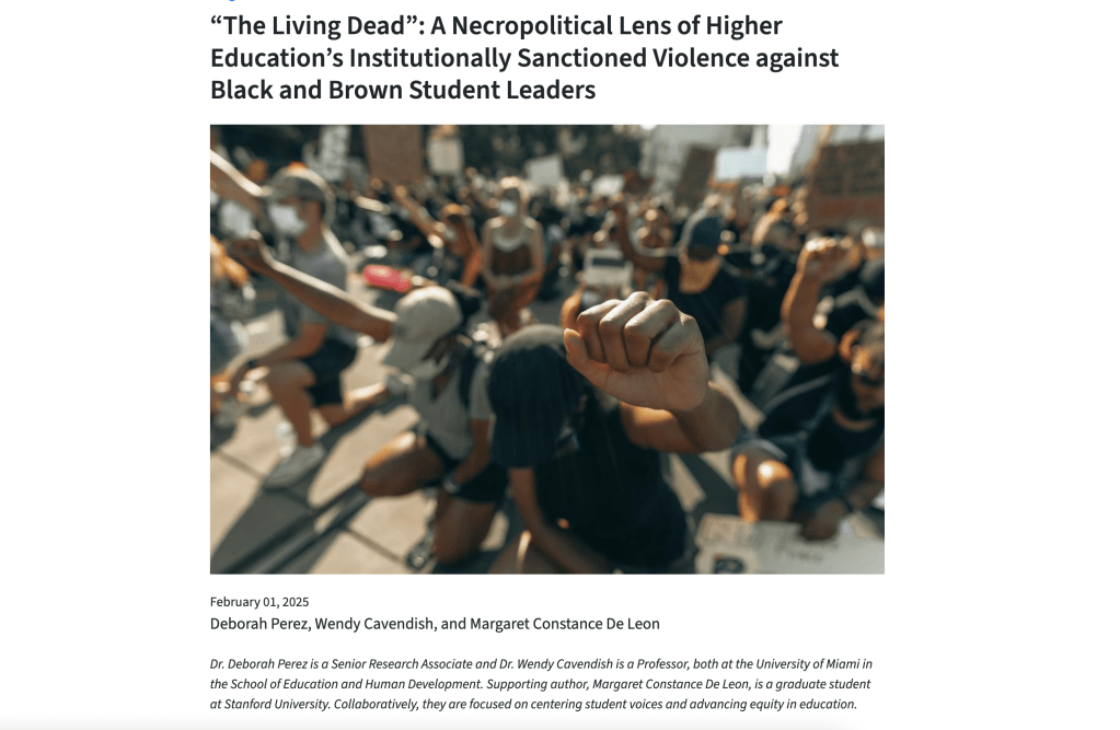 “The Living Dead”: A Necropolitical Lens of Higher Education’s Institutionally Sanctioned Violence against Black and Brown Student Leaders